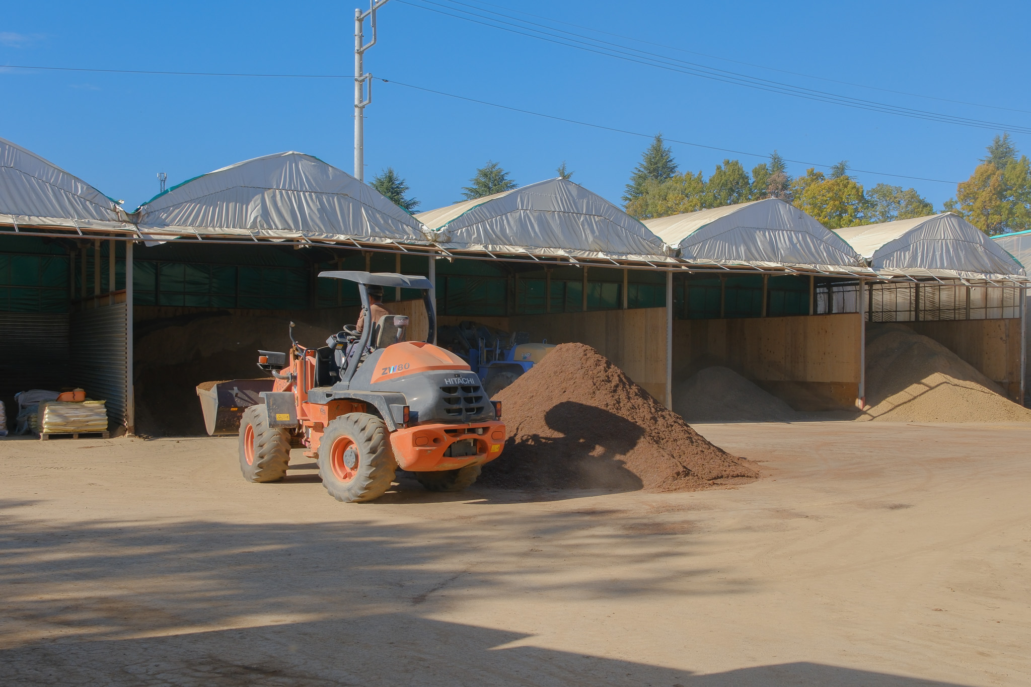 回収した園芸用土は、原料干場に広げ、人の手で異物を丁寧に取り除いた後、乾燥させ、当社の焼成機により約300~400度で焼成処理を行い、無菌化しています。